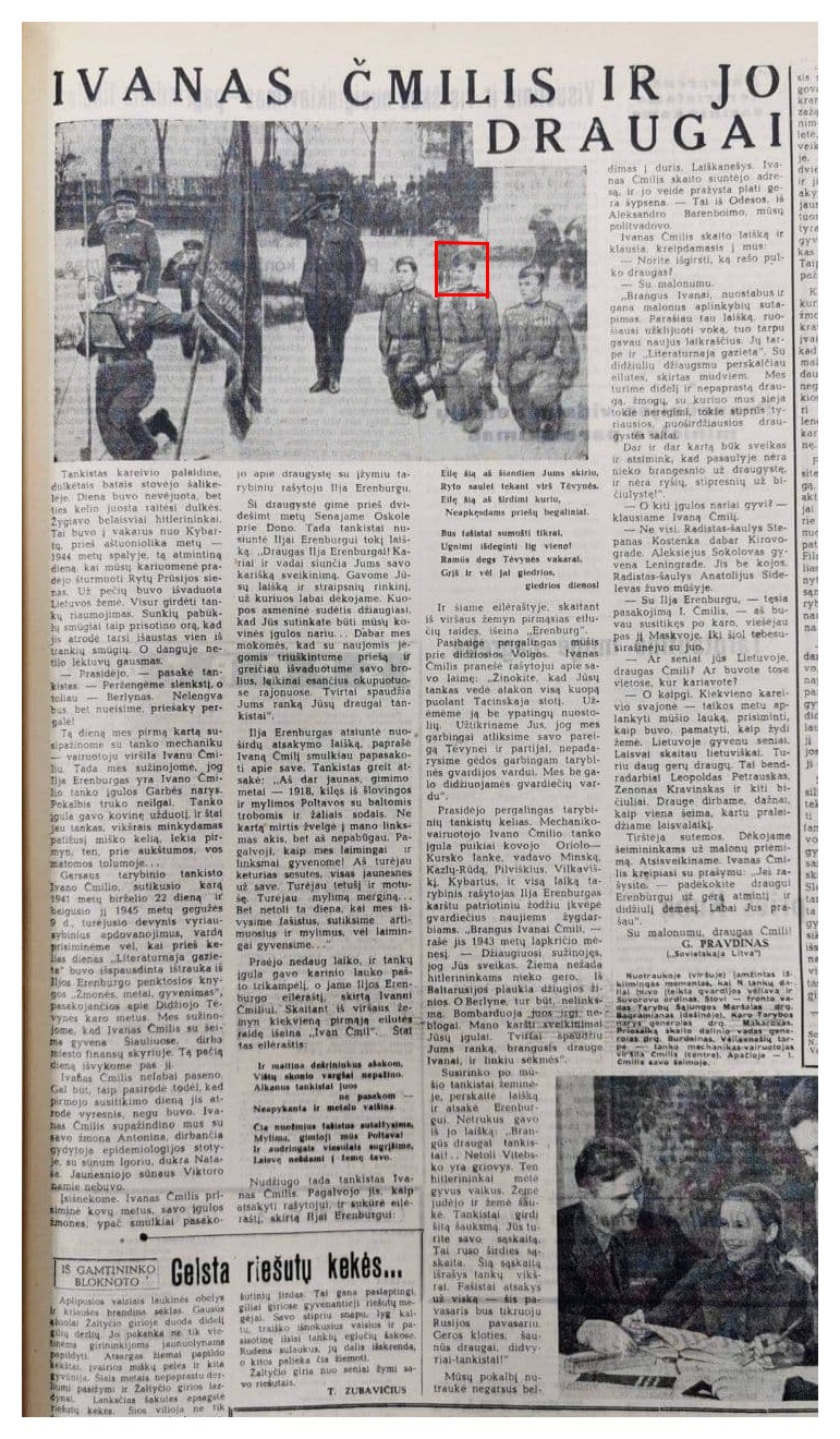 Įdomus faktas, jeigu tik tai galima vadinti įdomumu, yra tas, kad šiame tankų kariuomenės įsiveržime į Rytprūsius nuo Kybartų dalyvavo ir tankistas, tanko vairuotojas viršila Ivanas Čmilis, Seimo pirmininkės Viktorijos Čmilytės – Nielsen senelis. Jis buvo senas Iljos Erenburgo draugas, propagandistas buvo jo tanko įgulos garbės narys. Bičiuliai rašė vienas kitam dedikuotus laiškus ir eilėraščius. Viename laiške prieš Rytprusių puolimą Ilja Erenburgas rašė: “Brangūs draugai tankistai… Netoli Vitebsko yra griovys. Ten hitlerininkai mėtė gyvus vaikus. Žemė judėjo ir žemė šaukė.Tankistai girdi šitą šauksmą. Jūs turite savo saskaitą. Šią sąskaitą išrašys tankų vikšrai. Fašistai atsakys už viską – šis pavasaris bus tikruoju Rusijos pavasariu. Geros kloties, šaunūs draugai, didvyriai – tankistai!“.